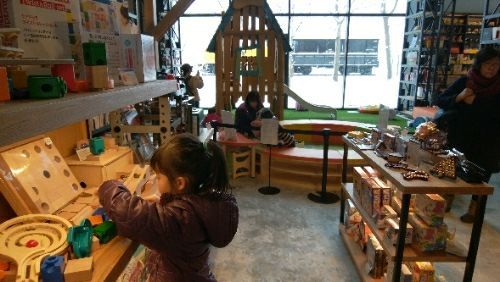 お~、キッズコーナーまであるし! ウチの娘さんは、木のパズルをやってるのかな? 兄貴の方は、児童書コーナーに入り浸ってます(苦笑)