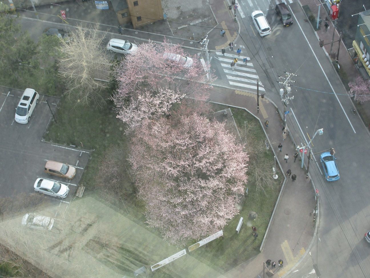 五稜郭の中の方は、この時にはまだチラホラでした… よく見ると微妙に木々がピンクです(笑)
