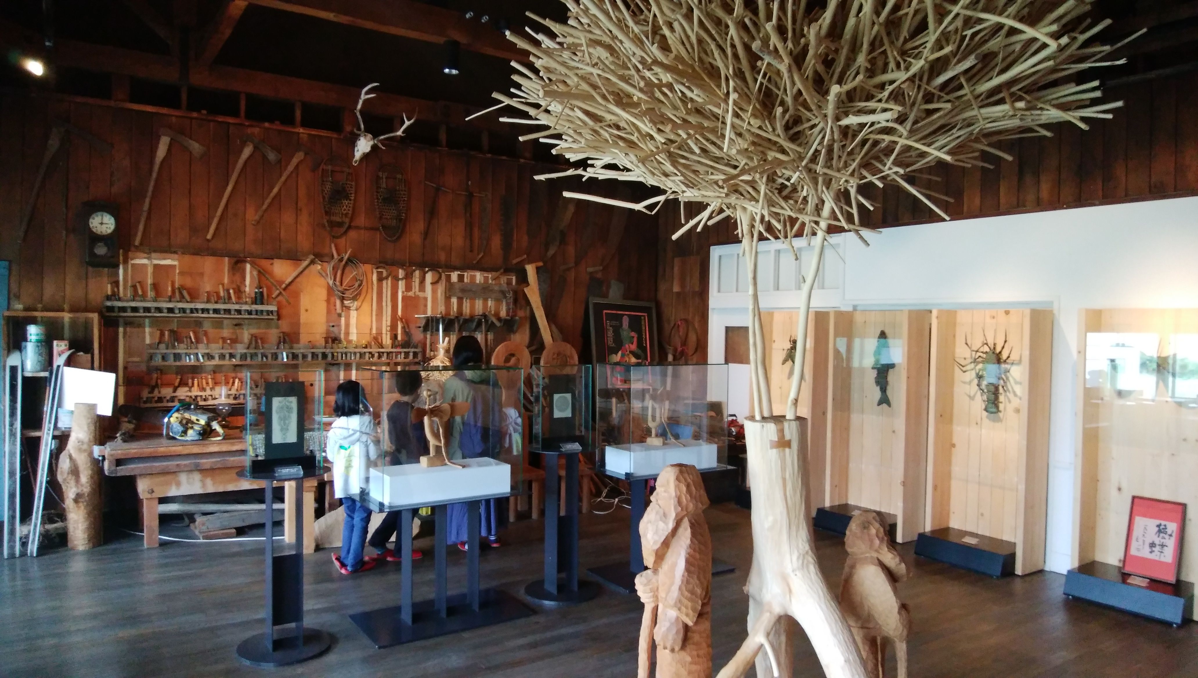 旭川生まれのビッキ(アイヌ語でカエルのこと)が、晩年、アトリエとして使っていた旧・筬島小学校を改装した、エコミュージアムおさしまセンターの中には…