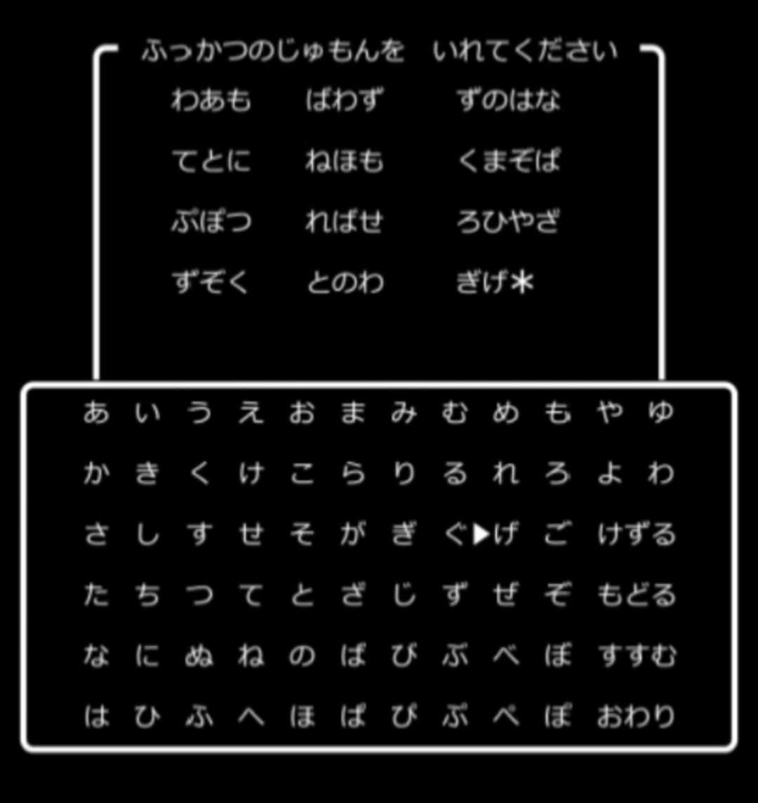 Ⅰに比べて、長くなった復活の呪文(苦笑) よく書き間違えて、ひとつ前のからやってたなぁ…