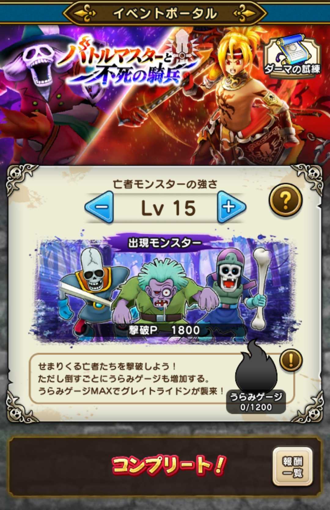 育成中のパーティーで、亡者モンスターを1ターンキルできる、レベル15で回しました♪
