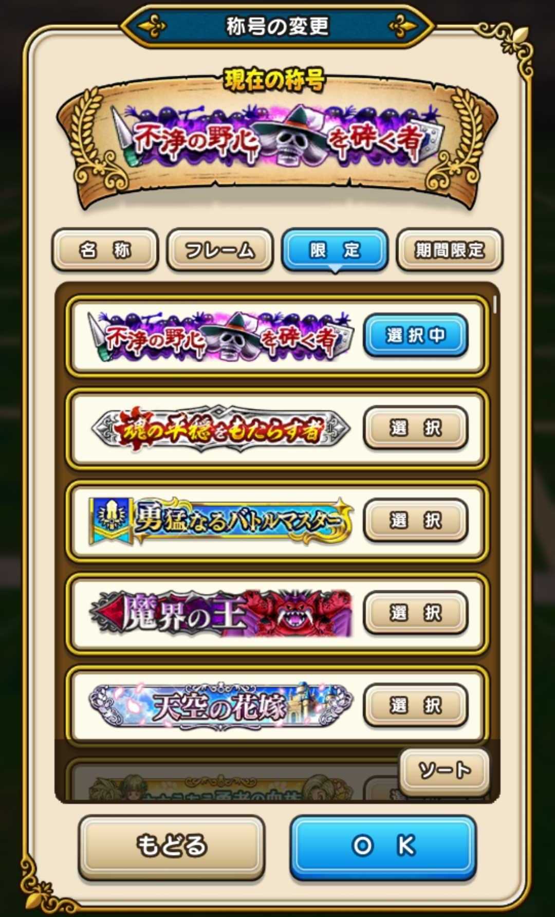 限定称号は「不浄の野心を砕く者」…、う~ん、さっき手に入れたのと、どっちにしよう??