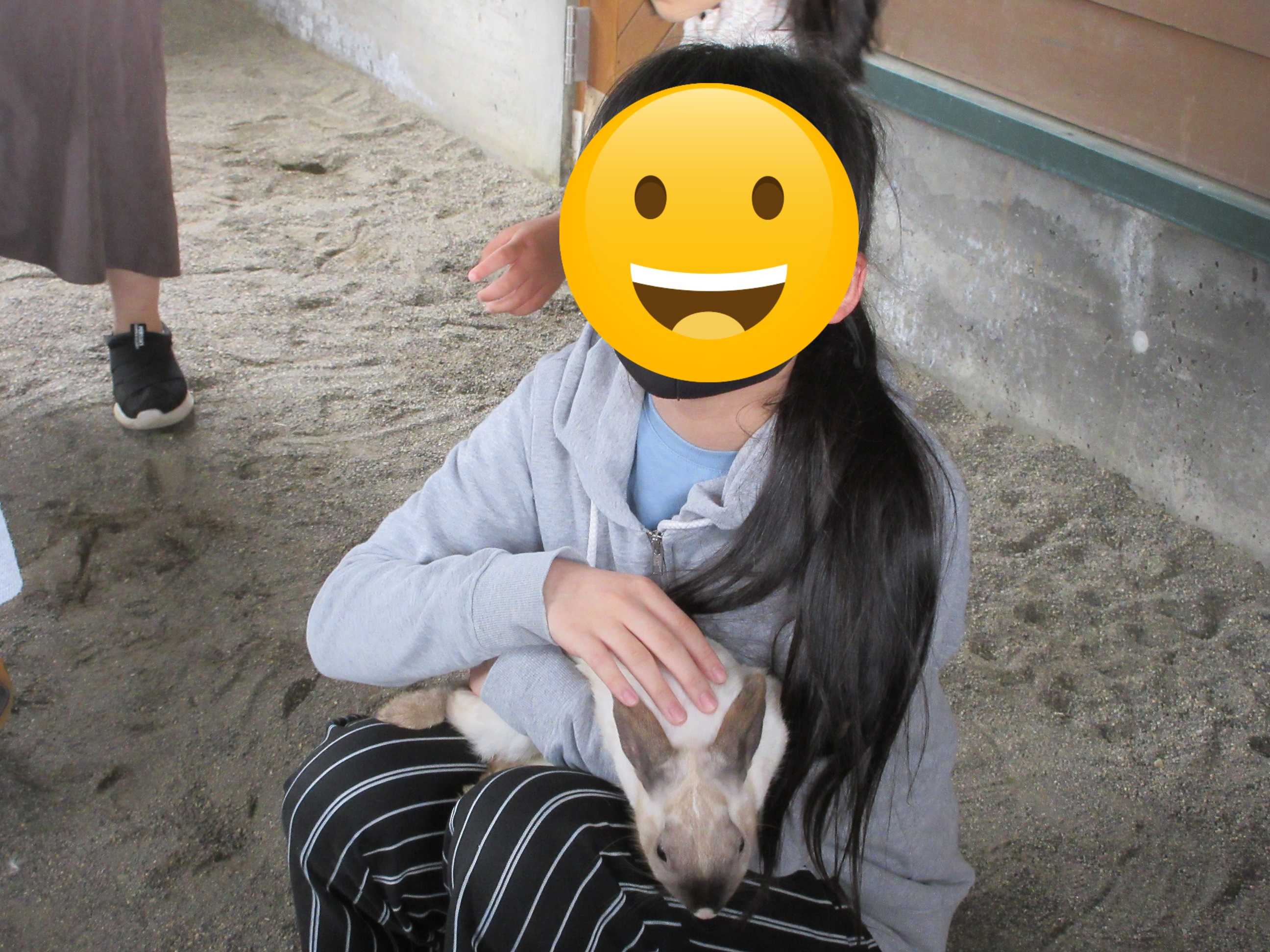 ウサギを抱いて、満面の笑みを見せる娘(笑) いやぁ、連れてきてよかったよ♪ …兄貴は?
