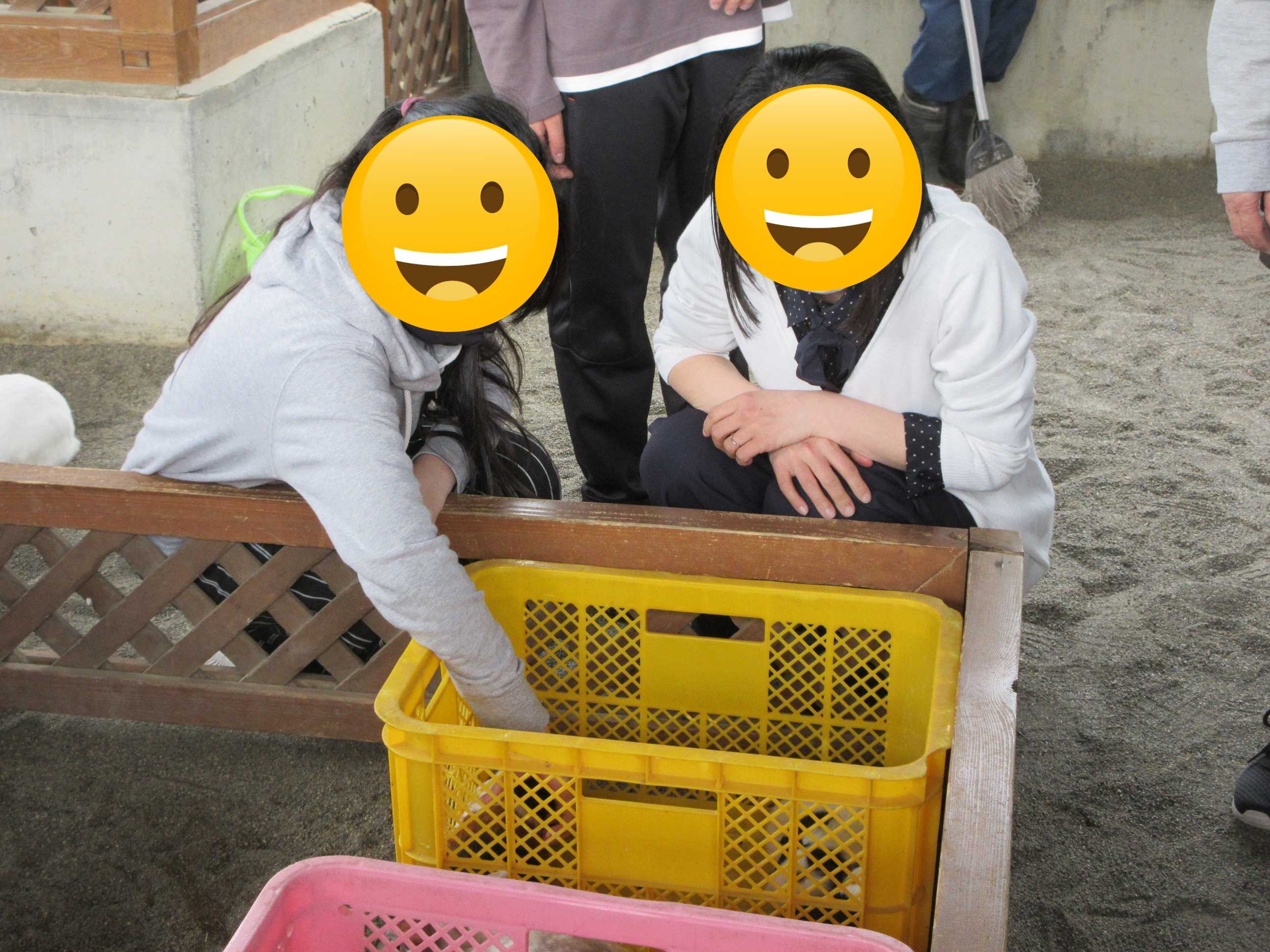 土日祝日午後1時~2時の1時間限定、小動物のふれあい広場。 カゴの中にいるのはモルモット