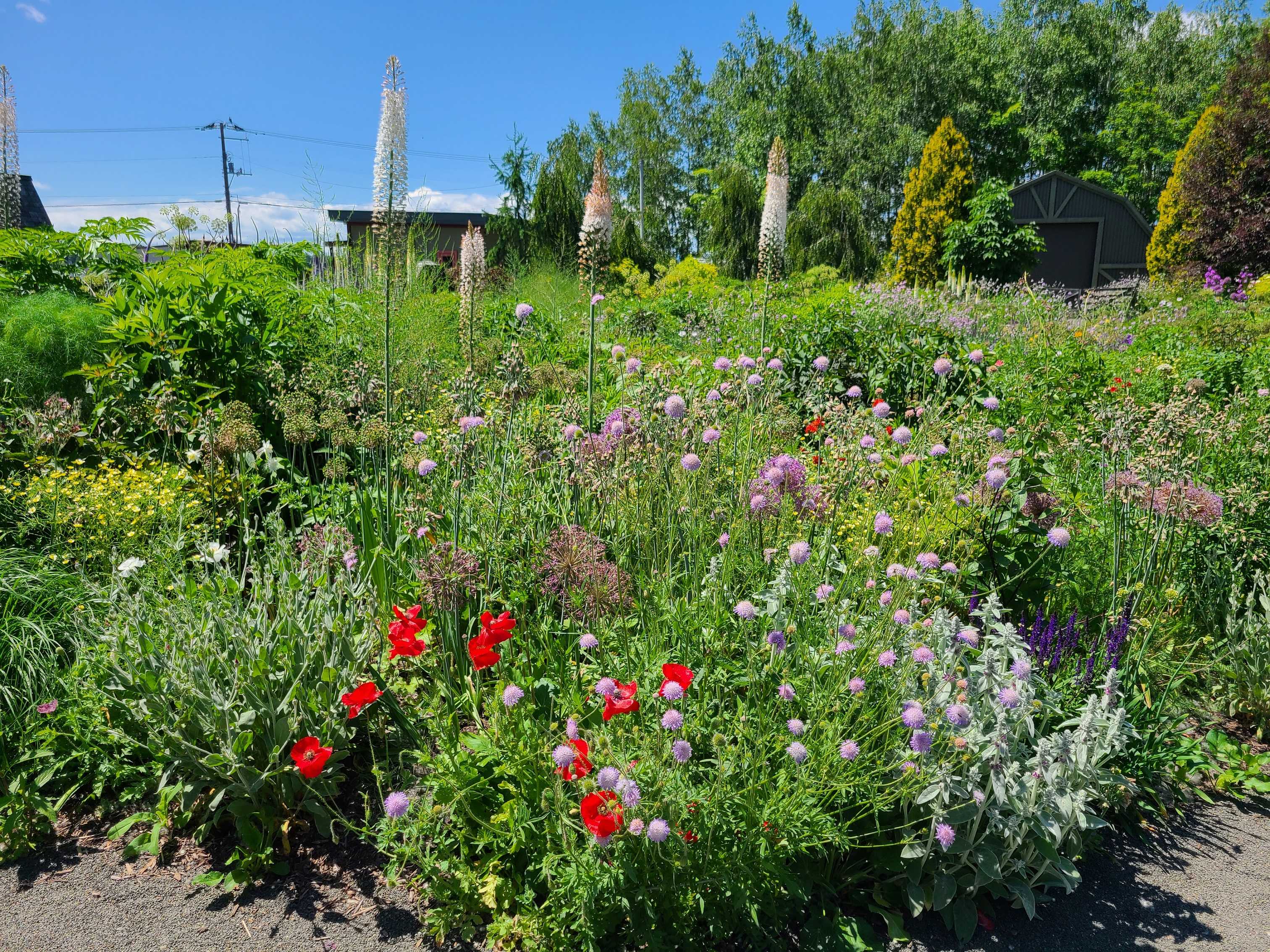 ノームさんのお家も、色とりどりの花々に囲まれて、見えないくらい(笑) いやぁ、天気が…