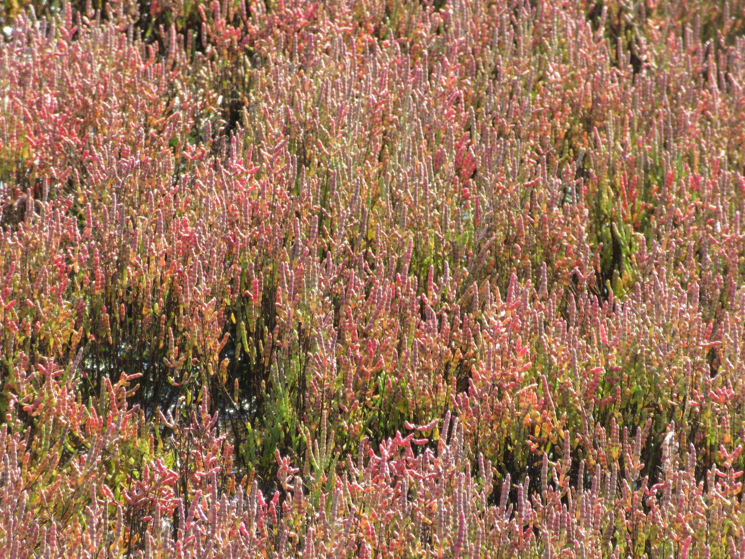 実はコレ、サンゴソウ(別名アッケシソウ)と呼ばれる塩水を好む植物で、秋には紅葉するんです