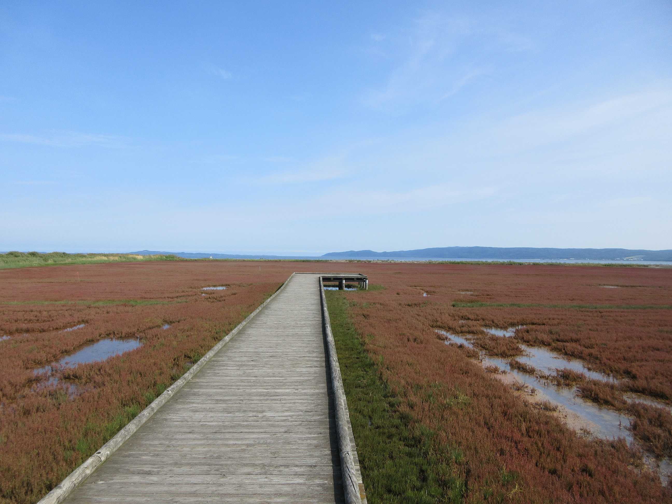 はい、やって来ました網走市は卯原内の「日本一サンゴソウの群生地」 空の青と能取湖の赤!?