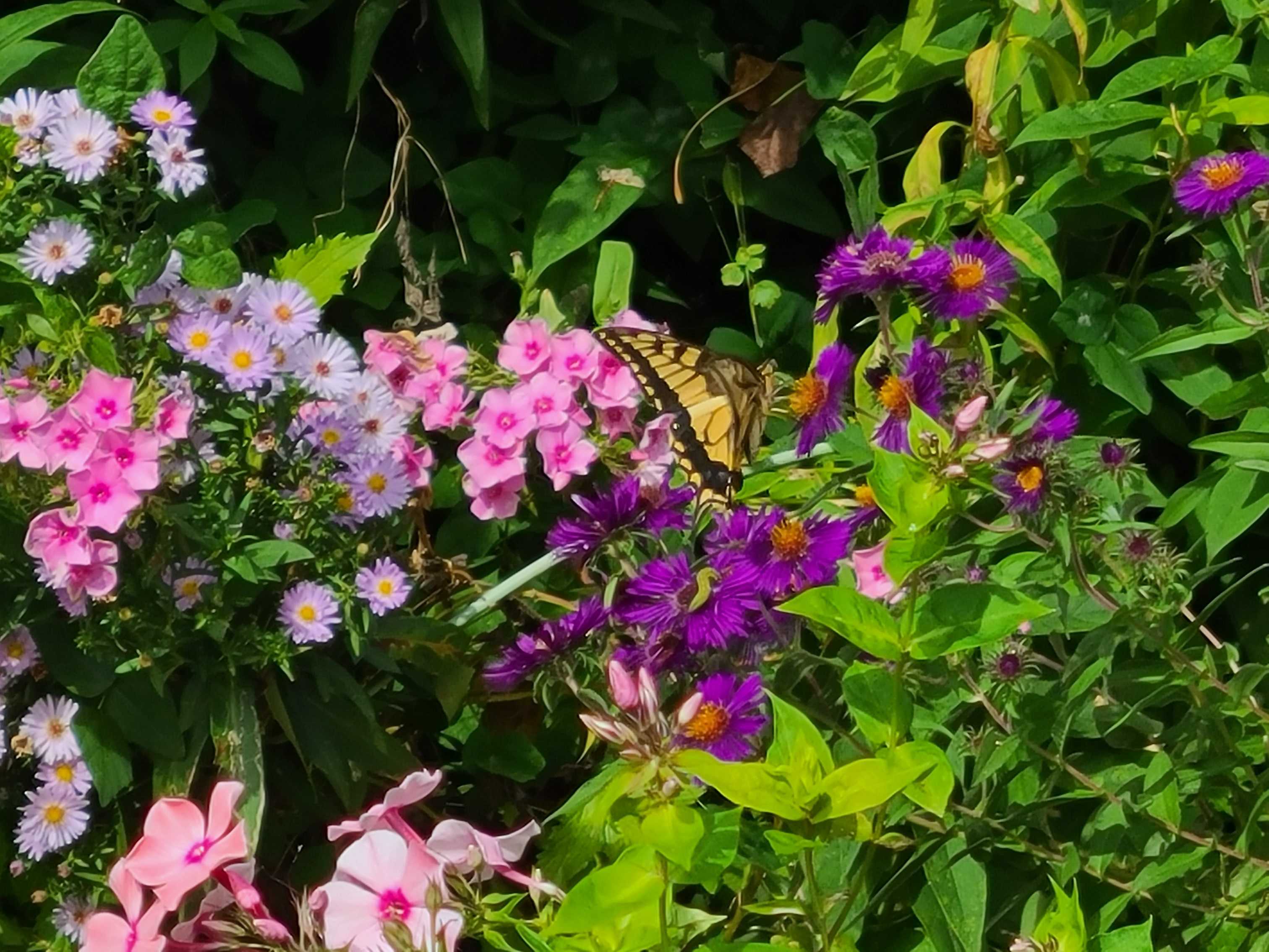 花の蜜を吸いに、キアゲハが現れましたよ🦋 北海道では、ナミアゲハよりキアゲハの方が普通