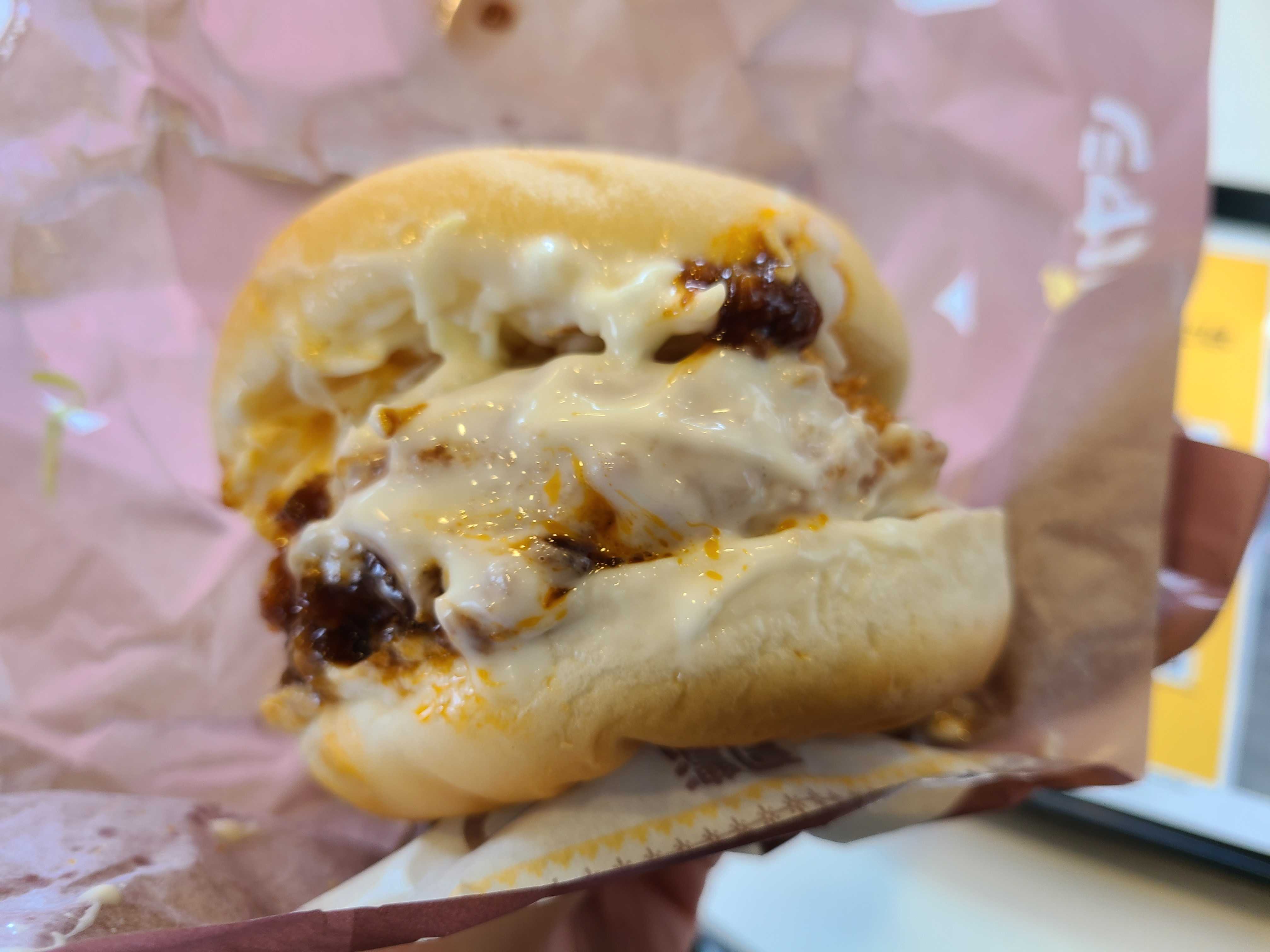 ホワイトソースとビーフハヤシが、見事にマッチしています🍔