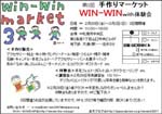 第3回手作りマーケットWIN-WINの開催チラシ=DMをロロッコさんにお願いして出来上がりました来週参加者さんに送ります!-----開催チラシ出来上がったので早速 人気手作りサイトに載せて頂きました。「クラフターズ応援団」クラフターズ応援団のHPに行ったら右側を見て→少しスクロールして下さい。そーしたら「WIN-WIN」の開催チラシが載っていますチラシをクリックしたらWIN-WINのHPにリンクしています。遊びに来てください.....私事ですが、18~20日頂いたのお返事ちょっと遅くなるかもしれませんスミマセン・・・手作りマーケットWIN-WIN 参加者募集日程 ** 2月29日(金)~3月2日(日) 3日間 ** 11:00~16:00 ** 札幌市中央区南2条西1丁目山口中央ビル 6F ** 大通り駅‥‥徒歩3分 2月29日参加者さん募集しています。※3月1日(土)、2日(日)はブース全部埋まりました。有難うございますグループ参加OKです!!ブース代など詳しい事は…WIN-WINのHP http://winwin.the-ninja.jp/質問など問い合わせは… win-win2007@mail.goo.ne.jp