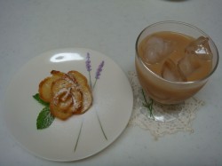 硬くなったフランスパンを、有効利用しようとがんばってみました。一番手っ取り早いのはラスクだけど、私のアート心が<もうひと工夫して~>というので考えました。パンを超薄切りにして、小麦粉を水で溶いたもので貼り付け、油で揚げるだけですが、こんなに可愛くできました。