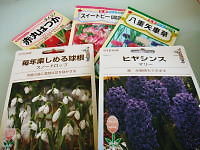 懲りずにまた種やら球根やらを買い込んできてしまいました。タッセルを作るための磁石を買いに行くために行った、ホームセンターの入り口に、園芸コーナーがあるからいけないのですわ!しかも安いので困ります!買っちゃうその前に植える場所を確保する方が先なんですが、後回しになってます。今回買ったのは、スノードロップ、矢車草、ヒヤシンス、スイートピー、二十日大根、みんな好きなんですからしょうがないです二十日大根とスイートピー以外は植えました。これは場所の確保をせねば蒔けません・・・あと、この間貰って来たニラももう蒔いて良いそうなので殻をとって蒔きましたマメに刈り込むと良いモノになるそうなので、早く試してみたくてウズウズしてますヒヤシンスは1つ水耕栽培にするつもりです。家の中にも良い香りが欲しいですよね