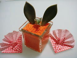 昨日はあれから検索をしてみて、ディネマ・ポリブルボンちゃんを栽培している方のHPを見て回りました。似たような症状が、改善しているという方の対策法を私も真似してやってみる事にしました。上手く復活しますように!! 前に謎の野菜、グラパラリーフなるものを紹介しましたが、挿し木しておいたところ、芽吹いてきてくれましたのでご紹介します。どう見ても多肉ちゃんですね~酸味があって西瓜の皮の様なお味です。大きくして、ポキポキ折って頂こうかと思っています。植え方のせいか、ウサギちゃんに見えなくもない気がします。まだまだちっちゃい子ちゃんたちなので可愛いですよ。ついでに鶴の箸置き、折り紙で遊んで作ってみました