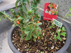 土曜日に我が家に新しい植物が、2種類加わりました。紫式部とハイビスカスです。中学校の美術の先生のお宅で見せてもらい、可愛く乾燥させられると知ってから、早、うん十年が経ちました。「いつか植えたいな」と思っていましたが、ついに小さな鉢を入手しました。来年は大きくなってくれるとイイナと思います。ハイビスカスは<ローゼル>と言う種類で、花後に実のなる種類であります。花が終わってしまっているのが残念ですが、良く見かけるハイビスカスより、地味な感じのお花であります。この実を乾燥させたものをハイビスカスティーに使うと、行きつけのハーブ屋サンに教わってから、気になる存在でありました。とても可愛かったの丁度持ち運べる小さいものを見つけたので、買いました。早速ひとつ摘んでかじってみましたら、とても酸味が有りました。リンゴと共に煮てジャムにするのに良さそうです。ビタミン、ビタミン!!来年の今頃、同じようにこの可愛い赤い実を、付けてくれますように!