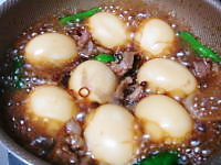 卵この間安かったので買いましたが、意外に食べず、賞味期限が気になります。生卵を食べたがる主人のために小さめのパックも買いましたが、この沢山の卵を消費できるように、卵の中華煮を作ってみました。オムレツも良いですが、夕飯のおかずには中華煮が良いです。1度茹でて、殻をむくのが少し面倒ですが、あとは煮るだけ、しみ込ますだけ!簡単でいいわね濃いめの味付けにすれば、ご飯も進みます。醤油、砂糖、ショウガ、鷹の爪、ごま油、そしてうちは少しだけ五香粉をいれます。豚肉としし等も彩り豊かになりますね。良いおかず~