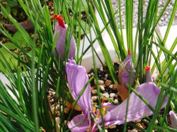 先日、花芽が出たと紹介したサフラン・・・もう咲いちゃいました!早すぎ!まあ、嬉しいから良いのですがね。途中経過みたいなものを楽しめなかったのが残念なだけです。良い天気になって喜んで咲いちゃった!!って感じ…アバウトな私と似ている気がします。ペットは飼い主に似ると言いますが、植物もそうなのかも知れませんね楽しげに、おおらかに、沢山咲いてくれることを希望しますこの雄しべ、香りを嗅いでから採って、乾燥中にございます