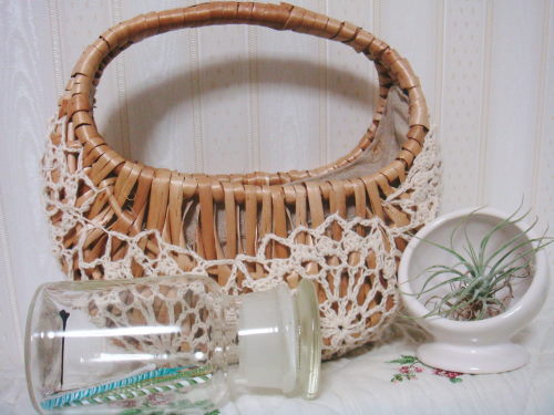 普段ネットでお買い物をするとすれば私の作品の材料がほとんどですが今回はステキなカゴバックを発見して買ってしまいました。イベントの片付けも終わらないまま、昨日はお出かけの日でしたが、商品が届くと思うと、会議をそっちのけでワクワクしていました。帰宅後に届いたのですが、可愛く包装されていて、またも感動私は森ガール系ではないですが、こういうナチュラルなモノは大好きですレースがアレンジされた可愛いミニバッグそのほかにも瓶や容器などを買ったので疲れがマックスというのに早速開けて飾って遊びましたよまた買おうと思いますfrog+flapというお店で1000円でした~http://www.shop-online.jp/frogflap/