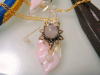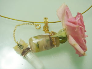 気付くと随分と日記の更新をしてませんでしたが、まだまださぼる日々が続きそうです。知り合いの方に頂いたシンビジュームも紹介したかったですが、デジカメが電池切れWまたの機会にします。1年ほど前から構想していた花とジュエリーをコラボするアイテムがようやく形になり始めてきました。天使の羽ペンダントトップは15天使分出来上がりましたし、あとはこのシリーズ(名付けてポーションシリーズ)を1点づつ心をこめて作るつもりです。これはシラクラと3日ほど完成までにかかるんですが香るペンダントとしても、生花を楽しむペンダントとしても使えると言うアイデア作品。薔薇ミミエデンを生けてみましたこのペンダントトップは大天使ウリエルをイメージした物ルビーとアンバー(正確にはコパール)が使われていますがコパールは私が形成したものですまた素敵な作品をご紹介出来るのを楽しみにしてますね