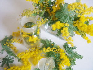 この間お出かけした時に花屋さんで見かけたミモザ・・やっぱり家に帰っても気になってましたが、急なお出かけの用事が出来たので帰りに買ってきました。早速飾り付け~~♪残念ながらこのミモザは香りが薄かったのですが良い香りのミモザに埋もれてみたい~というのも、私の夢の1つです。うちに植えてあるミモザはまだ一向に咲く気配なし・・(T_T)無念