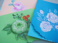 PCを買ってからもうじき2年が経とうとしてます。このブログを書くのが、私の初めてのPCデビューでしたが、ステキな方々と出会えて楽しく過ごせましたわ。いつも読んで頂いて、ありがとうございます。未だに両中指2本でキーを打ちこんでるので、進歩は無いんですが、全国にお友達が出来て、ボケ気味の御脳も少しは働いていると思いますWネットゲームのお友達に送るために用意していたアクセサリーを昨日郵便局に出しに行きました。一昨日も郵便局に行ったのに、これはお手紙を入れたかったので手作りカードを作るべく、次の日に出す事にしました。暇な時に作り貯めたカードが、無くなりそうだったので、少し作っておきましたよじが異常に下手なので、小道具でごまかしますWWW ↑ ↑グリーンのを使いました 愛用のペンたちと綿花 以前からなかなか開かないと思っていた綿花、開いてました(^◇^)綿花の種情報を教えてくれたsoraさんのお家の綿花はどうなったかな~?
