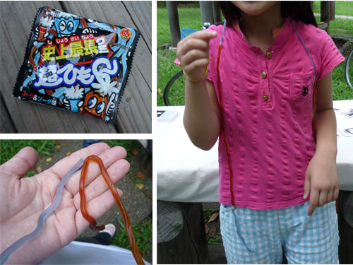 姪っ子にはいつも何かしら驚かされるんだけど今回は、「ちえちゃん見て~」って言ったかと思ったら文鳥のシロちゃんが姪っ子の口に顔を突っ込んでお口のお掃除を始めたんでびっくり文鳥ってあんな習性があるんですね~。そして、この首からぶら下げているヒモのようなもの。これ、グミなんですよ~。ブチッてちぎって「はい、あげる」って(^^;)とても食べ物に見えない。。。世の中知らないことがまだまだありますね。。。