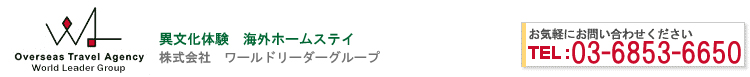 海外ホームステイ no アドバイザー ワールドリーダーグループのブログサイトをご覧いただきありがとうございます。海外のリアルカルチャー! リアルライフ! リアルボイス! リアルワーク! を体感できる異文化体験旅行に旅立ちませんか。洗練されたアジアをイメージした店舗では、旅のエキスパートスタッフが、ご相談をお受けいたします。このブログサイトでは、ワールドリーダーが提供するさまざまなプログラムやお客様の体験談など紹介していきたいと思います。ご来店にあたりましては、完全アポイント制になっております。ご質問やご相談、また資料請求などのお問い合わせはお気軽にご連絡ください。