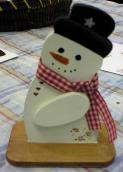 『リフォームフェア』のご案内2009.1.24(土)25(日) 10~17:00会場 夢メッセみやぎ 入場無料 http://www.the-reform.co.jp/カルチャーブースにおいて、今年も1コインLesson開催致します♪去年は、ハートのキーホルダーを製作しました。2歳のお子さんから、還暦を過ぎたおじいちゃんetc…たくさんの方に楽しんでいただきました今年は、スノーマンのメモスタンドをご用意下準備してありますので、どなたでもご参加いただけます♪完成品はこちら→1 2 3 4 5 61~5まで下準備してまいります。6のお顔と帽子のボタンの右下のワンポイントをLessonします♪短時間で仕上がります。出来上がったらニスを塗り、各パーツをボンド貼って組立完成です。いつもお世話になっています、Re;ギャラリーさんのご厚意により、参加する運びとなりました。ありがとうございます♪楽しませていただきます(^^)vなので、2日間。ぼくのチームの応援には行けませんマイコの分まで応援よろしくお願いします