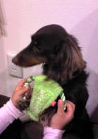 いえいえ。。。プルとお嬢のイタズラですりんごについていた、あのアミアミです(^ε^;))アハハ... お嬢に抱っこされているからおとなしいのですが、プルには攻撃的です。時分より低い(地位が)と思っているんでしょうね。。。