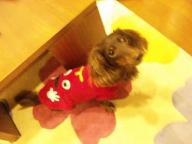 先日のフォト。プルがどうしても着せたいって~以前買ったカカオの洋服を必死になって着せて… 無理やり着せられたカカオ暑いこんなんでいい? 終わってよ~さぁ~今日もいい天気仕事に取り掛かろう!!