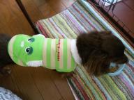 カカオのプレゼントにガチャピンの服JDお嬢が小さい時、放さなかったガチャピンのぬいぐるみを思い出します。ガチャピンの目がフェルトで貼ってあったんだけど…それが外れてしまって、黒のマジックでパパさんが書いてあげたんだけど…「コレじゃない」って大泣きショック!!次の日パパさんが少し大きめのガチャピンを買ってきたら、ますます大泣きコレじゃなきゃダメ!!ってあったんだろうね 似合う? 小さめのを買ったら、やっぱ小さかった(^^;男の子だから難しい(>