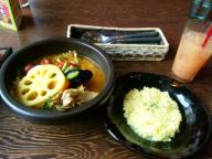 今日はお友達とあの!!大魔神夫人のKanakoのスープカレー屋さんへお友達はお肉が苦手なので、ずーーーーーーっと前から連れてこようと思っていたお店♪厳選された美味しい野菜がど~んっと入ってあるどっさり野菜カレーをおススメしてたの~ レンコンのトッピングは別料金でしたが、つけちゃいましたオレンジかグレープフルーツか迷ったけど…グレープフルーツを♪辛さも選べます。maicoは20。お友達は25。辛いの大好きだけど…味見し合って、25が限界かも~(><)カレーって家庭料理で、外で食べるなんて~って思ってたけど。。。 ココのカレーは食べに行きたいお店野菜とスープがたまらん!!ご飯を少なめにとリクエストしたら、野菜1品付けてくれました~こういうサービスって嬉しいね♪DKぼく。のJrユースの仲間のママさんがバイトしてます。高校の部活も一緒に頑張ってます美人ママさんなのですぐにわかりますよ~皆さん是非お越しくださいませ~12時回るとすごく混みます!! なので…デザートはファミレスで(^^;何カ月ぶり~だったので、ガッツリ話しこみました(^^;今日も楽しく過ごしました♪