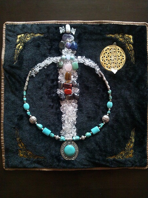 ●クリスタルエナジーアートで自分のチャクラヒーリング!/ブラッシュアップクラスへの誘い♪ こと葉です。今日は曇り空。過ごしやすいお天気になりました。お盆休みとあって、ご家族で過ごしている方も多いことでしょうね。今日は東京国立のスタジオで「東京14期レイキヒーリングブラッシュアップクラス(土曜3回目)」と「感じるレイキ練習会&体験会」が予定されています。あゆみさんとけいちゃんが進行してくださいます♪...天使の時間...♪ そして、来週は大阪でも、大阪5期ブラッシュアップクラスが始まるのです♪いよいよです~!!お申込み、絶賛受付中です。こと葉とホトケが進行する大阪ブラッシュは、大阪3期以来となります。今回は全チャクラ活性がテーマで、レイキとチャクラとクリスタルがいっぱいの楽しい集まりにしようと思っております♪8、9、10、11月の4カ月間! ご縁のある方とご一緒したいです!! 東京の15期ブラッシュアップクラスは、10月からスタート。土曜と木曜の2クラス制で、10、11、12、1月の予定となっております。こちらは、まゆみさん&かおりちゃんの東京レイキセミナー担当お笑いビューティペア(長い)にお願いいたしました♪おふたりにお願いするブラッシュは1年ぶり。相変わらずふたり揃うと抱腹絶倒のオモシロさです。何気にスピマニアなまゆみさんの数々のレジェンドを生で聴きたい方はぜひ...♪かおりちゃんが絶妙なツッコミで解説してくださいます。あれ? これレイキのクラスだよね? ってくらい笑いつつ、でもしっかりとレイキやスピリチュアルの土台がインプットされますので、発アカのレイキヒーラーさんはぜひこの機会をお見逃しなく!! えー、さて。昨夜はまた楽しい鉱物遊びをしてしまいました。チャクラのヒーリングを、遠隔で自分にしました♪遠隔と言っても、距離は離れておらず、目の前のクリスタルエナジーアートを自分に見立てて、レイキを送るという方法です。これがもうすばらしく深いヒーリングになりまして、気に入ったので、方法をご紹介します! 人のチャクラは宇宙のエネルギーを人体に取り込む重要な場所。主要で伝統的なものは7つあると言われます。それぞれのチャクラには対応するクリスタル(石)があり、昔からチャクラ活性に用いられてきた歴史があります。今回使ったのは、頭頂の第7チャクラ:ホワイトハウライト、クリアークオーツのマカバ、アメシストの勾玉 眉間の第6チャクラ: ホークスアイ、チャロアイト、ソーダライト喉の第5チャクラ:ラリマー、ブルーレースアゲート 胸の第4チャクラ:セラフィナイト、ローズクオーツ、アベンチュリン鳩尾の第3チャクラ:タイガーアイ、シトリン丹田の第2チャクラ:ヘマタイト、レッドタイガーアイ会陰の第1チャクラ:レッドジャスパー、スノーフレークオブシディアン、スモーキークオーツ、ブラックオニキス これらのチャクラ対応ストーンを人型に配置して、前日も使ったクリアークオーツのナチュラルワンドでレイキのシンボルを描き、一つ一つの石に向かってレイキを送っていきました。 ワンドの下にあるのは、神聖幾何学のフラワーオブライフという文様です。これの上にクリスタルを置くと、みるみる色や輝きが変わります! エネルギーチャージにぴったり! ヒーリングをしたのは夜でしたが、もう眠たくて眠たくて。 頭頂から順番にまさにチャクラヒーリングを受けている感覚でした。 自分で手を身体にかざしたり当てたりして行うときよりも、誰かにしてもらっているような感覚に近いのが面白かったです。 もちろん、今回はクリスタルを使いましたが、そういうものがなくてもチャクラのヒーリングはできますし、クリスタルを手に持ってその手のままレイキを体に当てるのでも大丈夫。私はいろんなことを試してみたいだけなんですよね~。 夜の写真は、暗いのでぶれがちです。 目の前にこういう感じで置いてヒーリングしています。 さかさまに置くと、まるで宇宙人♪水色のターコイズのネックレスでできた部分は、まるで水面に映る潜在意識レベルの自分のように感じました。 これを使って、自分ではなくほかの方のヒーリングもしてみるつもりです!大人の自由研究、楽しいです。 愛と感謝を込めて。こと葉- - - - - - - - - - - - - - - - - - - - - - - - - - - - - - - - - - -発芽*レイキアカデミー主催の講座・集まりのご案内です!- - - - - - - - - - - - - - - - - - - - - - - - - - - - - - - - - - -■発芽したい人のレイキセミナー(どなたにもご参加いただけます)レイキを使って心や体を癒したい! 自分らしく夢を実現していきたい!一日でレイキが使えるようになる、当アカデミーのメインセミナーです。http://www.hatsuga-reiki.jp/category/1265966.html【東京】9月12日(金)、9月21日(日) 講師:福島麻由美、坂本かおり【大阪】8月30日(土)、9月6日(土)、9月13日(水) 講師:奥田みさよ、塩田美子、奥田裕之(土日のみ) ■感じるレイキ練習会&体験会(どなたにもご参加いただけます)レイキを体験&練習したい方、そして定期的
