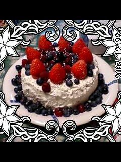 ケーキはストロベリーとラズベリーとブルーベリー。