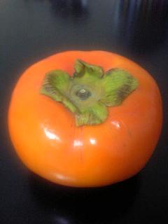 いとこに立派な柿をもらいましたすごい大きくて立派。あまりにもキレイなので撮ってみました。ひとつ食べてみたら、まだちょっと固めだったので、もうちょっと熟してから食べたいと思います。
