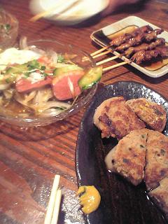 今日は仕事が終わってお出かけ後、帰ってから仕事がちょこっと残ってこんな時間になったけど、もう遅くなりついでに更新しちゃいますちょいとあるものを取りに妹のところへお邪魔したので、皆で焼き鳥へ・・・ナンバの南蛮亭です。大食漢の私たち夫婦二人と妹家族三人ですが、この食べっぷりを見てください特に久しぶりの焼き鳥にうちの旦那はかなり壊れておりました。ビールに焼酎・・・・いったい何杯呑むねん鴨のサラダ+レンコン肉詰め+ココロ鴨がおいしかったぁ。ココロもやわらかくて絶品!牛のなにやったかな?+ししとう玉ねぎ 甘くておいし~ねぎま ここのはホントお肉がふわっとしてて、めっちゃおいしいの豚バラ だんなが気に入ったみたいでバクバク食べてましたつくね ふわっふわなんです。一度ゆでてから焼いてるとのこと。手羽 これもやわらかいくてジューシーささみ お肉が大きくて味がしっかりしてます皮 パリッパリですサンカク 尾っぽだそうです。初めて食べました。あぶらっぽさがたまりません。鳥丼 義弟がこれでしめてました^^;妹とダンナのしめ 焼きおにぎりあまりにおいしそうなので、私も食べてみました。めちゃうまっ☆写真を撮り忘れていたので食べかけです。どうですか?見ているだけでも、おなかいっぱいでしょ本当に私たちって際限なく食べれるんです。こわいです。明日はぜったいに調整します。最後に、皆でソフトを食べながら家に帰りました