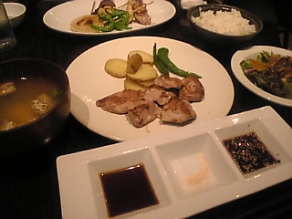 何度目かの『千里菫』。マグロほほ肉のステーキ・ランチにしました。マグロをステーキすると硬くなりがちですが、ほほ肉はやわらかくて美味です。ソースは韓国風ソースが一番あうように思いました。友人は、六品ランチ。ここはコーヒーもついてるし、雰囲気がいいので、ついつい長居してしまいます。昨日は、お昼の就業開始時間に遅れてしまいました