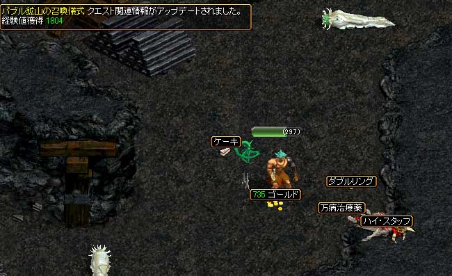 今年も今日で最終日。今年は、色々な事がありました~。RSではずっとメインあちゃ一筋でしたが今年はサブキャラを育ててました。前半はWiz 後半はテイマー。@ちょこちょこ剣士をw(秘密オンリ~でw)Wizもテイマーもフォーリン卒業したので来年はあちゃがんばるかなw(@ちょこちょこ剣士を秘密オンリ~でw)今年の締めくくり?に単身剣士でばふぉに突撃してきました。ソロでは厳しくなったと聞いていたので 萌えますね 燃えますね!まずは、赤い悪魔みたいの?(o・`v´・)9 イェアー塔秘密ポタ出し装備あるので楽勝でした^-^vそして次は鳥さん(o・`v´・)寒い季節にはやっぱこれですねw ぽっかぽか( ̄▽ ̄)(o・`v´・)9 イェアーPTメンバーをシマーで守れる人に憧れて作った剣士。なぜかパラ一直線勇者様に育っちゃった剣士様(;;^;ω;^;;)勇者様は鳥さんにも楽勝です^-^v次はお馬さんだったのですが、馬PTがあったので途中で一匹わけてもらいました。急いで倒したのでSS撮り忘れちった^~^;そして、ラスボスばふぉです(o・`v´・)ばふぉ閃光で死にかけましたが満載POTで体制建て直し!他PTさんにフル支援頂きました(*ノωノ)感謝です(人´∀`)80%くらい削ったのですが・・・・何回削ってもズンズン回復します>ω<Xald太 『たすけてダメえおん~』・゜・(PД`q。)・゜・ダメえおん 『どうしたんだい?Xald太君』(o・ω・o)?Xald太 『バフォアンがいじめるんだよ~』・゜・(p´□`q)・゜・ダメえおん 『そんなときは!!』(o・`v´・)ダメえおん 『どこでもモ~ル~』(≧◇≦)ノダメえおん 『この緑の心臓と赤い瓶を使えばバフォアンなんて一撃だぉ』( ^ω^)おっおっおっと言うことでwダメえおんの素敵アイテムで・・・せっかく素敵アイテム使ってクリアーしたのにばふぉ手無いしどこかに飛ばされるし^~^;後はテイマーで4キャラばふぉクリアー。たぶんテイマーは楽勝でクリアー出来ると思うけど4キャラでせめて一個は、ばふぉ手出てほしいよね^~^;~ おまけ ~皆さん、良いお年をヽ( ⌒o⌒)人(⌒-⌒ )v