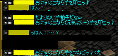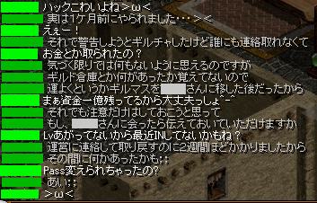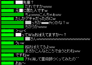 先日、秘密復活に向けてWizで狩りをしているとシフさんがやって来た。そして、いきなり話かけられた。以下、Xaldm的回想あるよ。シフさん: (いきなりスペースの白噴き出し?)(この時、誰か友達の別キャラかな~?と思った。)シフさん:↑シフさん:(オオカミになって上で狩れよ)Xaldm的翻訳(この時、訳わかんね~と思った。)Xaldm:?Xaldm:(英語できるかにょ・w・?)Xaldm的翻訳シフさん:?シフさん:(蘇生してくれ、哀しい哀しい澪)Xaldm的翻訳(はへ?Wizの私にリザ頼んでんのかな?と思った。)Xaldm:?Xaldm:(私に助けを求めてるのかにょ・w・?)Xaldm的翻訳シフさん:(おおぅ・・・じ~ざす・・・・?)Xaldm的翻訳ワケワカンネーヨヽ(`Д´)ノとりあえず エンヘイ し・ちゃ・えぃwシフさん:(ありがちょ~)Xaldm的翻訳これだけわかったw本当にこれでよかったのかな~(;;^;ω;^;;)しかし、Lv400↑まで日本語無しで育ててきたのかな~と思うと感心したw