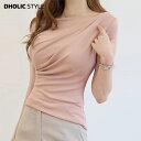 穏やかなドレープラインのフェミニンなTシャツ【只今10%OFF】タックドレープTシャツ・p391599 レディース 【tops】 韓国ファッション トップス Tシャツ ボートネック 半袖 ショートスリーブ タックドレープ 斜め スリムフィット タイト 細身 無地 お出かけ 大人 フェミニン 夏 カジュアル 春 STYLE 今日のコーデ 20代 30代【只今10%OFF】タックドレープTシャツ・p391599 レディース 【tops】 韓国ファッション トップス Tシャツ ボートネック 半袖 ショートスリーブ タックドレープ 斜め スリムフィット タイト 細身 無地 お出かけ 大人 フェミニン 夏 カジュアル 春 STYLE