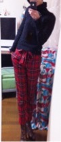 ▼開催中キャンペーン▼全ショップ対象30万ポイント山分け!1/14までモバイルでP3倍☆ ~1/11まで ☆さてさて、楽天ブロガーさんたちに触発され(笑)今日届いたばかりのパンツの”着画”私もとってみました思ったよりちっちゃくなってしまいましたスミマセン><着用しているのは、今日届いたコチラのパンツです▼▼▼赤パンかわいいですがコーデが難しくて、無難に黒タートル合わせです 笑黒タートル、無敵です☆身長155cmなので、長めになるかなっと思ってたけどもうちょっと短くてもいいかな?まあいいやと思う程度、許容範囲でほっとしましたボトムって通販するとかなりドキドキしますねー。ヒップラインが出ないパンツが好きなので、かなり気に入りましたあと……裏地があると商品説明には記載されてますが、私のところに届いたやつには、裏地はなかったです><ベルト部分の裏側に黒い生地があててはありますが、ヒップ部分とか脚部分を覆うようないわゆるパンツの裏地らしきものはない状態です。このお値段なので、クレームはしないでおきます><☆・☆・☆・☆・☆・☆・☆・☆・☆・☆・☆▼ 予約アイテム ▼【1月下旬~2月上旬入荷分】lavenham ラベンハムcrook clip libertyキルティング リバティプリントショルダートートバッグ【02/21 入荷予定】999YEN!!!スキニーデニレギ