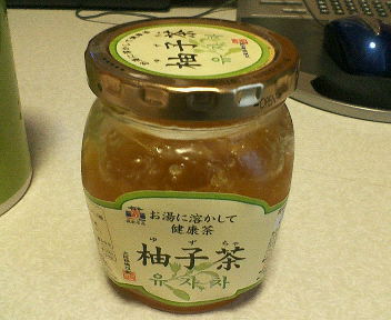 いろいろハマってるものはありますけど、特にハマってるのは【柚子茶】。外食した時とかに時々飲んでた柚子茶を、たまたま車で数分の所にあるお店で見つけて即購入!元々柚子関係のものは大好きでよく食べたり飲んだりしてたけど、これはもう買うしかない!と思って即買いしてしまいました。。。これがその瓶。でもラベルに小さく【マーマレード】って書いてあるし。。。確かに見た目マーマレードだねぇ~( ̄▽ ̄;)私はホットで飲むので、こんな風に溶かして飲みます。底に溜まった柚子の皮を後で食べるのが楽しみ♪