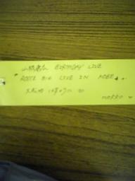 今日は、七夕私の通勤途中の、地下鉄の連絡通路に七夕飾りができていました。そして、親切に自由に書き込める短冊と鉛筆がテーブルの上においてあります。(地下鉄の職員さんも、粋な事をしますね~)数日前から気になっていたのですが、高校生が「キャー」「ワー」と楽しそうに盛り上がっていたので、通り過ぎる日々が数日。そして、チャンス到来誰もいない。。。そこで、短冊に願い事を書いてみました『山根康広 BIRTHDAY LIBE ROUTE 816 LIVE IN KOBE が、大成功しますように』 願いが届きますように。それととっても嬉しいお知らせ~新星堂 PRESENTS山根康広 シークレットイベント~ちょっと寄り道ROUTE 816 LIVE IN AREA~と・・・書かれた当選はがきが届きました~当日は、やっぱり少し遅刻です。(仕事なのよね~)だけど、行けることになってよかった~それと今日は、BINちゃんのBIRTHDAYです。(ベーシスト福井敏さん)おめでとう~