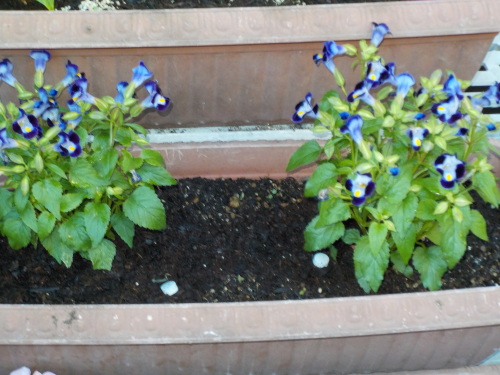 午前中にシンビジュームの植え替えを終えました。しかし、今まで大体2~3年に一度(手引書によると2年に一度らしい)やっていたのを昨年は手を抜いた為、根が鉢内で一杯になり少し手こずりました。昼過ぎから雨が降り出したので、植え替えた鉢には水分を充分吸収できそうなかんじがします。ニオイバンマツリが二色の花を付けました。イチゴのプランターに二つ少し赤くなってきました。