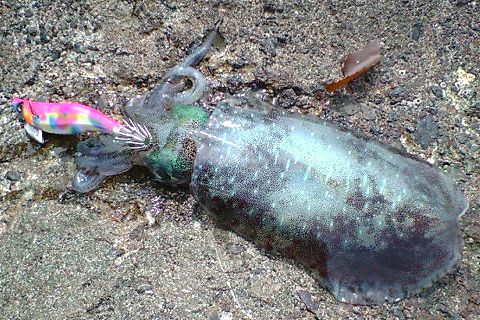 今シーズンは、3月から伊豆を走り回った訳ですが全体的にの伊豆だったような・・・それでも某サイトのダービーでは、釣る人は決まって釣ってます自分もエントリー(申し込み)は、したのですが・・・&&&まだまだ無謀な挑戦でしたでも、何か目的を持って釣りをするというコトは、今までになくモチベーションを高めてくれ、ダレる気持ちを抑えてくれました。4月から始まったアオリフリーク・オープンダービーも同時に参加。このときから松SPを使用したのですが、これで自己記録更新して1650gで4月度エントリー出来ました。5月も毎週のように伊豆に通いましたが、状況は悪く最大で900gです。こちらはエギ王Qで釣ったためエントリー出来ず6月には好調と言われていたポイントで何とか1500g6月度はこれでエントリー出来ました。同日の夜には1650gが釣れました。この日、同行していた後輩は2050gを釣り、友人は1800gを釣り、同時に数釣りも今シーズン一番の釣りが出来ましたが・・・この月には、岐阜支部のヘリテージAさんと弟子1号さんともお会い出来ました。7月の伊豆はますます渋くなったのでは・・・と思うほど巷では「水温が安定しない」とか「遅れてる」とか言われてましたがここまで苦労するとはこの月には、高知支部のやべさんとお会い出来、ヘリテージAさん、しんちゃん、弟子1号さん、関東支部のたなかいさんとも釣りが出来ました。ヤベさんの釣り、話はカルチャーショックとともに目から鱗本当に嬉しかったですしかぁ~し・・・釣れたイカの集計をしてみたら(ToT)500g以下===22杯501g以上===12杯キロアップ===3杯・・・・・・この結果に・・・もう少し釣れてる様な感じだったのになぁ~次は秋のシーズンまでエギングはお休みの予定ですが更なるスキルアップを出来るように、来シーズンも頑張ります