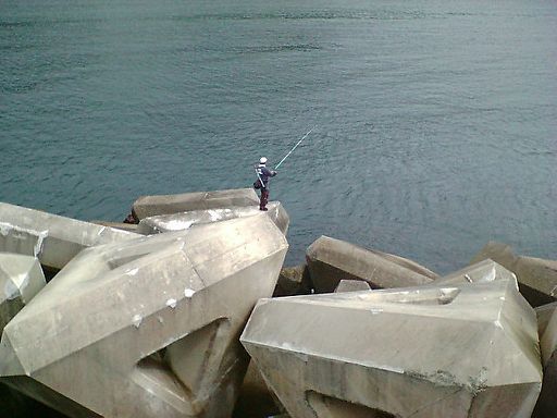 中潮 くもり時々晴れ某サイトのダービーに無謀にもエントリーしたのは良いんですが、今年の伊豆は今一・・・2キロアップ・・・尚かつ40cm以上がエントリーサイズまだ僕には敷居が高すぎたようですで、今日はそのダービーの最後のチャンス。一発勝負の一カ所のみ。回遊待ちに期待を込めて行ってきました。前日の天気予報では一日・・・フエルトスパイクとスパイクブーツを用意しました。レインウエアにも防水スプレーを吹きつけて、雨の日準備は完璧です。しかし・・・気温が高そうで現地到着はいつもよりちょっと遅い4時。雨も降ってないし、取り敢えず朝一はテトラへ。10時まで頑張りましたが・・・異常ありません取り敢えず、車に戻ってとを(^^;ちょっと眠くなったので、の目覚ましを掛けて少し仮眠です。しかし・・・ちょっとつもりが目覚ましも気が付かず、起きたら2時半かなりヤバいです天気も予報が良い方にハズレ、も降りそうで降らないしまで出てます。気温は・・・上はTシャツ1枚でも暑いですもう完全に夏ですねたまに吹く風が心地よかったんですが、4時ちょっと前から空が雲で覆われて、今にも降りそうな感じ・・・風も真横からで釣り辛い「雨が降ったら帰ろう・・・」と思っていたのに降りませんでしたその後風が止んで、良い感じです。(ここまでノーバイト)思い切りロングキャスト。リールのベールをオープンにしたまま、ラインを送ります。ちょっと煙草に手をやると、ラインが勢いよくスパ~~~っと飛び出して慌ててベールを返してロッドを立てたら、一瞬ドラグがジィィィ~~っていきなりテンションが消えましたチッチッチッチックショーーー!!(帰りにコンビニでこんなの買ってしまいました)それから30分ほど頑張ったのですが、ショックから立ち直れず本日終了オープンベールであんなにラインが出たのは初めての事です。グレやチヌでも無かった事で、一気に心拍数・・・本当に焦りました