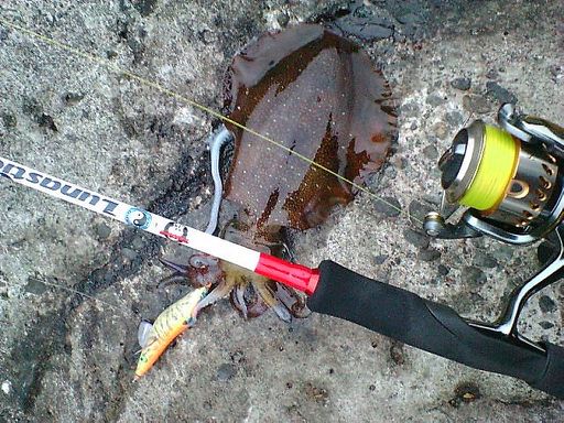 年がら年中、3.5号のエギしか使わない僕ですが前回の釣行で4.0号を使ってみました。使用ロッドはみちろんルナスティックです。実際、ルナのスペックはどのようなモノなのか?各社ロッドカタログには、スペックに 使用PE%.#~&.$号 使用エギ#.$~&.$号とかありますが、ルナには明確にそれがありません。松ちゃんやヤベさんが4.0号使ったとかは聞いた事がなかったので3.5号をメインにその上下は問題ないと思ったけど、実際に自分で試してみる事にしたのでした。まぁ、PEについては0.8号しか使わないので、取り敢えずそれは置いといて使用可能エギのサイズの検証です。これはあくまでも僕個人での見解ですのであしからず(^^ゞ雑誌などでは「春には4号など大きめのエギを使ってアピール」とありますが僕は晩秋に4号を使う事が去年から多くなってます。そして去年はそれで良い結果も出せました。何故か?春にはまた3.5号に戻ってますが・・・(^^?で、前回の釣行で試してみたのですが・・・前置きが随分と長かったですが、問題なく使えました(^^ゞ使用エギはアオQ、エギマル、エギ王Qの3種。操作性も3.5号と変わりなくキビキビ動かす事が出来ました。そして釣れました(^o^)それからディープタイプの餌木。こちらはRC、エギマル、Q速と使用。重量がある分、ロッドに乗せやすく軽くキャストしてもぶっ飛びます。今回も向かい風では活躍してくれました(^^)vちなみに3.0号とか2.5号とかのエギも持ってはいるのですがそれは使わないので、試しませんでしたが問題ないでしょうね(^o^)まだまだ課題は山積みですが、次回釣行の時も少しずつ解決出来るように課題を抱えて海に向かいたいと思います♪