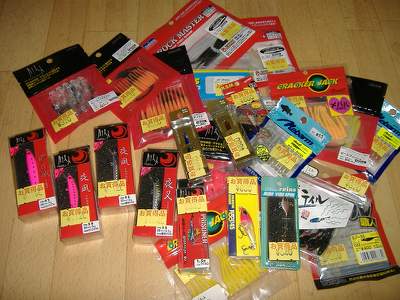 昨日の傷を癒しに釣具屋へ(爆(爆(爆(爆)・・・生まれて初めて「福袋」というモノを買ってしまいました福袋の種類は、バス、エギング、メバルとあったんですがここは迷わずメバル(\5000)をチョイス♪まぁ、中身はワームやジグヘッド、プラグが少々と思ってたんですがこんなに沢山売価総額\14000(以上)相当ですプラグが8個、ワーム10袋以上その他ミニスピンテールやら、ジグやらなんかとっても得した気分って、そんな気分にさせてくれないと福袋の意味ないですけどね(爆(爆(爆(爆)
