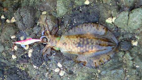 伊豆ではちょっと有名なサイトのダービーにこの春も参加させて貰ってます。年2回あるんですがこれで僕は・・・4回目だったかな(^^ゞこれはこれで、自分のモチベーションを上げる活性剤のようなもので、毎回の釣行に気合いが入ります。今まで過去の実績としては・・・30cmUP/1kg以上という晩秋のダービーでは29cm/1300gでUnder(^^ゞそして春は40cmup/2kg以上のダービーでは40cm/2300gは時間外(´Д⊂グスン共に参考記録でした。春のダービーも残り僅かとなりましたが終了まで、僕の釣行はあと3回の予定。チャンスがありますので、最後まで悪足掻きを(^-^)この他にも、仲間内で毎月やってるダービーもありますんで一年中、刺激ある釣行ができるんですね♪仲間内のダービーは、一ヶ月に1回のエントリーなので最初に楽になるか、時期を見て勝負を掛けるかその駆け引きがたまらなく面白かったりします♪そして僕の釣行は、食材確保が第一目的(爆(爆(爆(爆)僕個人としては釣れれば良いんですけど家族はイカが大好きですから、釣って帰らないと何を言われるか(爆(爆(爆(爆)もちろんホゲル事も多いですけどその時は・・・(хх,)そんな釣行ですが、ガツガツ釣りするだけじゃなく伊豆の楽しい仲間と会えるのも楽しみです。会えばおバカな話もできますし何だかんだと、楽しい釣りしてます(^^ゞでも悪足掻き・・・大好きです( ̄ー ̄)