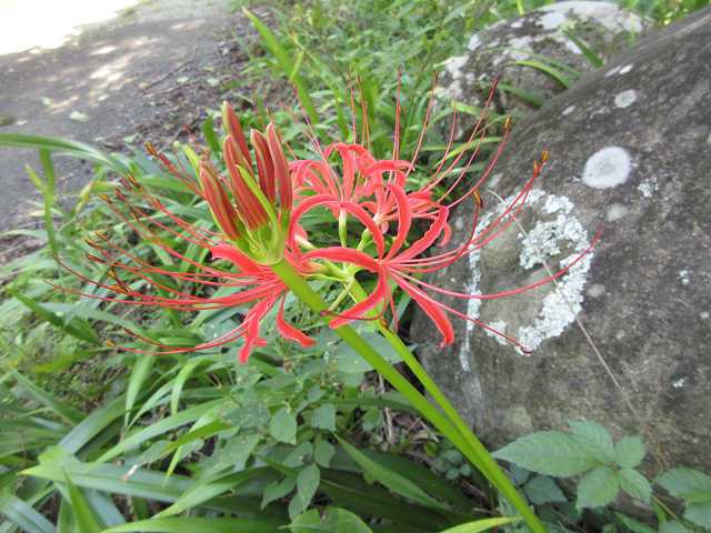 ソバ畑の側~ヒガンバナも咲いていました(^_^)