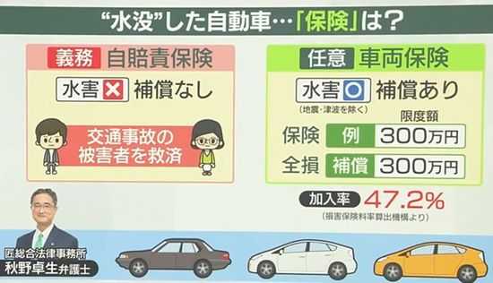 三重県四日市市で短時間にとんでもない量の雨が降って浸水等の被害が多数出たのですが中でも浸水…じゃなくて水没した地下駐車場については連日全国ニュースでも見かけてますこの駐車場は地下2階で基本、四日市へ出掛けた時の駐車場って認識なんですが中には月極で契約して複数台を止めていた…なんて方もいらっしゃいますあと、びっくりするような高級車も…で、我が身として考えて保険でなんとか出来るのかな?とか思っていたんですが…記録的豪雨 車が水没したら……補償どうなる? 「車両保険」加入率は47.2% 三重の“浸水駐車場”、274台の撤去めど立たず|Infoseekニュース三重・四日市市の駐車場で多くの車が水没した問題で、取り残された274台は撤去のめどが立っていません。気になるのは補償を受けられるかどうかですが、任意の車両保険に加入しているのは半数以下です。損害賠償を請求できるのか、弁護士に聞きました。■地下2階部分の浸水はほぼ解消日テレNEWSNNN12日の記録的…【全文を読む】自賠責保険で扱ってくれるのは交通事故のみ水没は任意保険ここまでは分かっていましたが!(記事内にある日テレNEWS NNNの画像)任意保険の加入率は47.2%47.2%!?衝撃ですその辺走っている車の半分も任意保険に入っていないってこと!?ビビり倒して調べてみたら2024年度_自動車保険の概況三重県の任意保険普及率対人対物共に約78%でございましたって言うか全国でも約75.5%なんですが…???混乱!そうこうしているうちに止水板の故障が明るみに!!!三重の冠水地下駐車場、浸水防止板故障か|Infoseekニュース記録的な大雨で冠水し、274台の車両が浸水被害を受けた三重県四日市市の地下駐車場「くすの木パーキング」で、車の出入り口からの浸水を防止する板が、大雨以前から故障していたことが18日、国土交通省への取材で分かった。【全文を読む】こういう場合、どうなるの?ちなみにこの駐車場は第3セクターですなんかもうよく分からないし気の毒だし勉強になる今後も注目です!